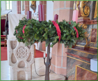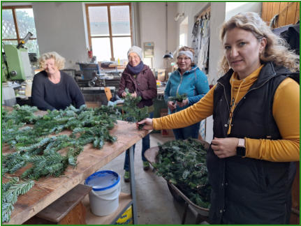 Fleißige Hände binden den Adventskranz für die Kirche