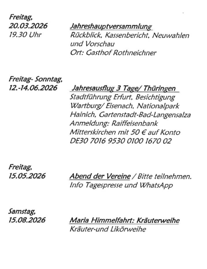 Jahresprogramm Gartenbauverein Mitterskirchen 2026